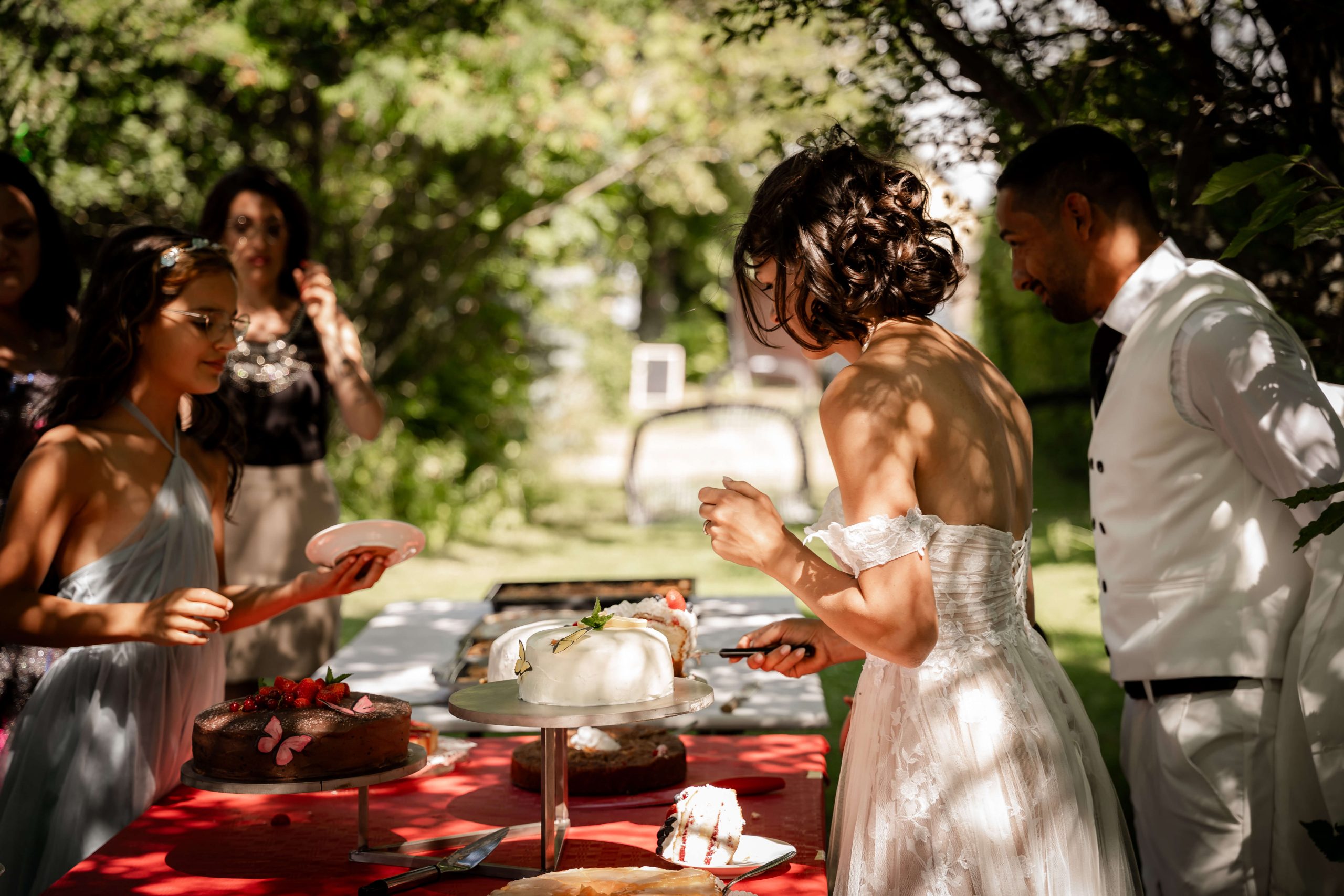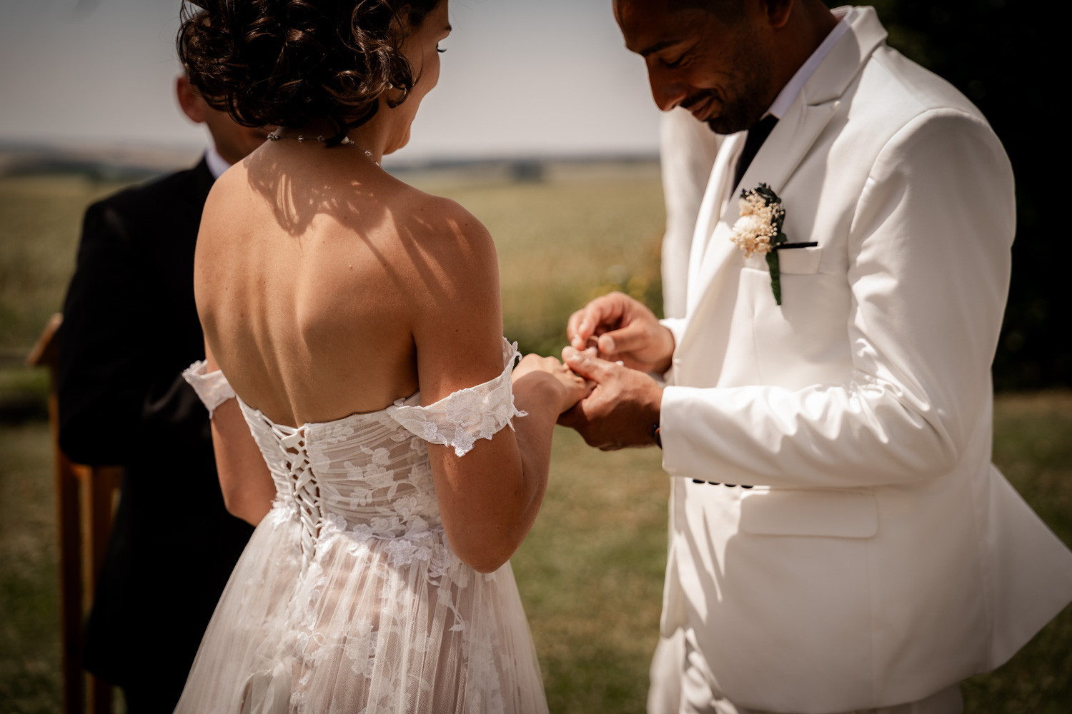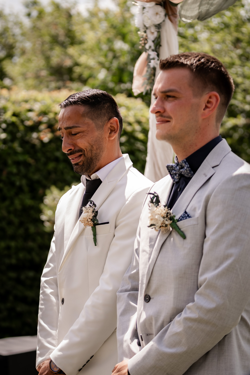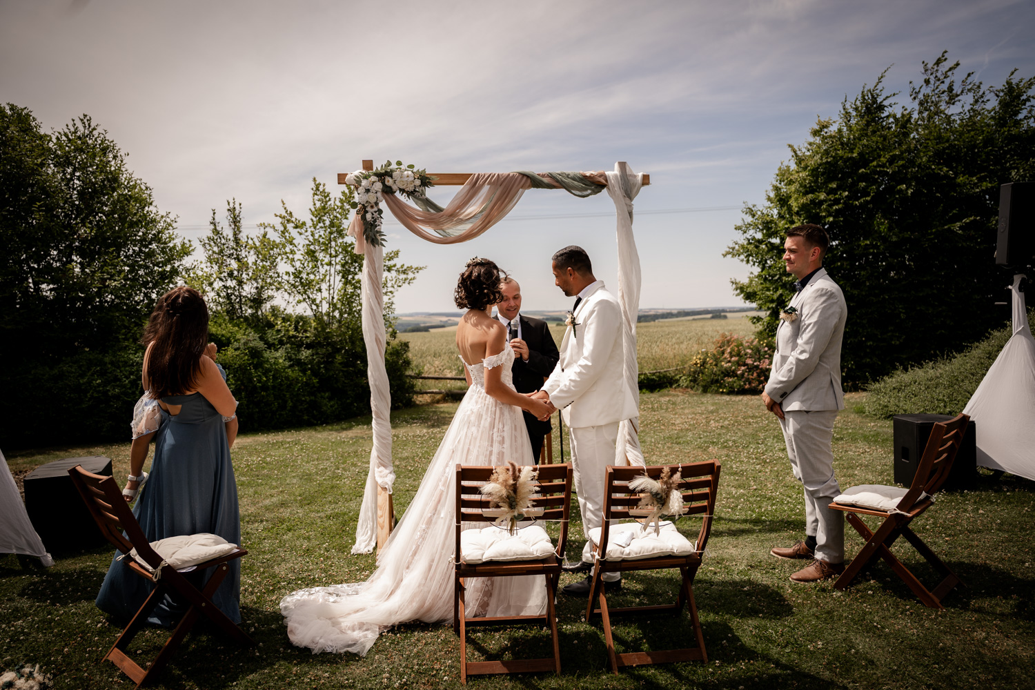 Die freie Trauung fand im weitläufigen Garten statt – ganz entspannt, mit Vogelgezwitscher und dieser ganz besonderen Sommerstille, die nur ländliche Orte haben. Nach der Zeremonie wurde Kaffee im Schatten der Bäume getrunken, gelacht, umarmt, erzählt.Das Getting Ready im Haus war etwas ganz Besonderes: Die lichtdurchfluteten Räume, antiken Möbel und liebevoll ausgewählten Details schufen eine Atmosphäre, in der man sich sofort wohlfühlte – edel, aber warm und persönlich. Ideal, um in Ruhe anzukommen, sich fertig zu machen, vielleicht sogar kurz durchzuatmen.