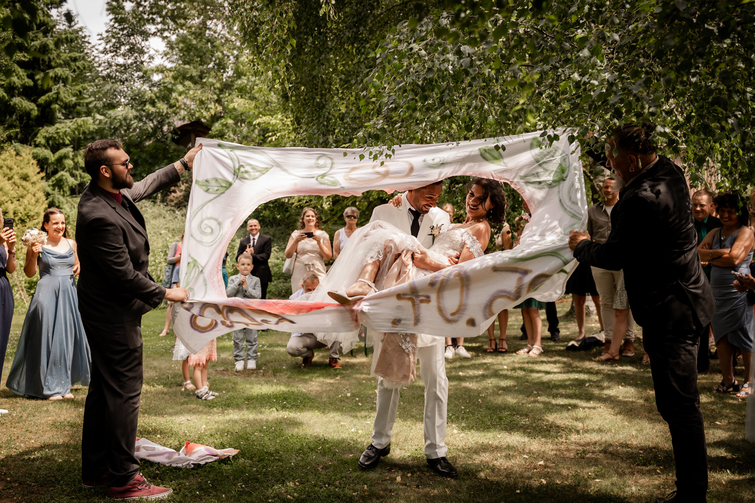 Manchmal fühlt sich ein Ort einfach magisch an – so war es bei dieser Hochzeit in Röthenbach bei Klingenberg. Ein wunderschönes Landhaus, eingebettet in die grüne Hügellandschaft, mit einem Garten, der an einen englischen Park erinnert. Alles war ruhig, natürlich und gleichzeitig voller Charme.